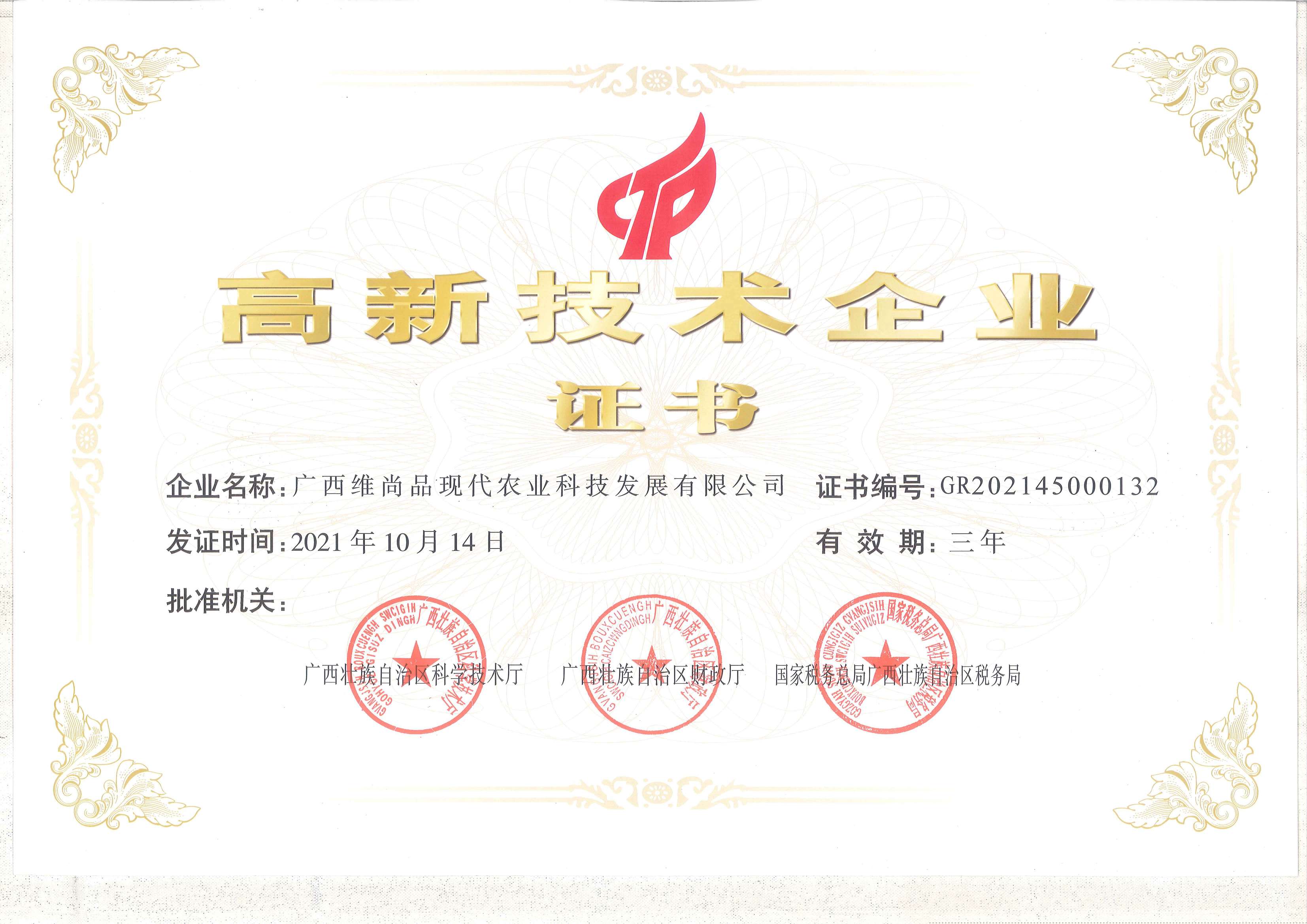 2022年維尚品高新企業(yè)證書